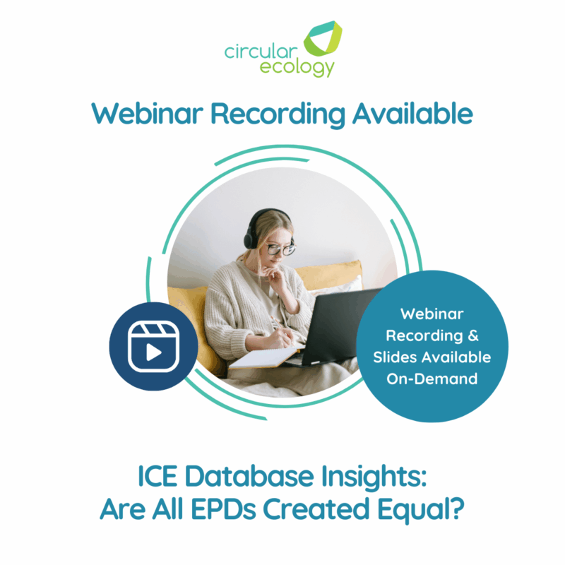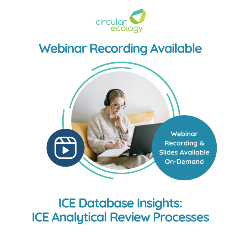 On Thursday, 22nd May, Circular Ecology hosted the third instalment in the ICE Database Insights webinar mini series: Are All EPDs Created Equal? The session, hosted by Dr Craig Jones (Managing Director) and Joe Rouse (Senior Sustainability Consultant), explored some of the main differences found in EPDs, and the implications for the ICE Database and […]