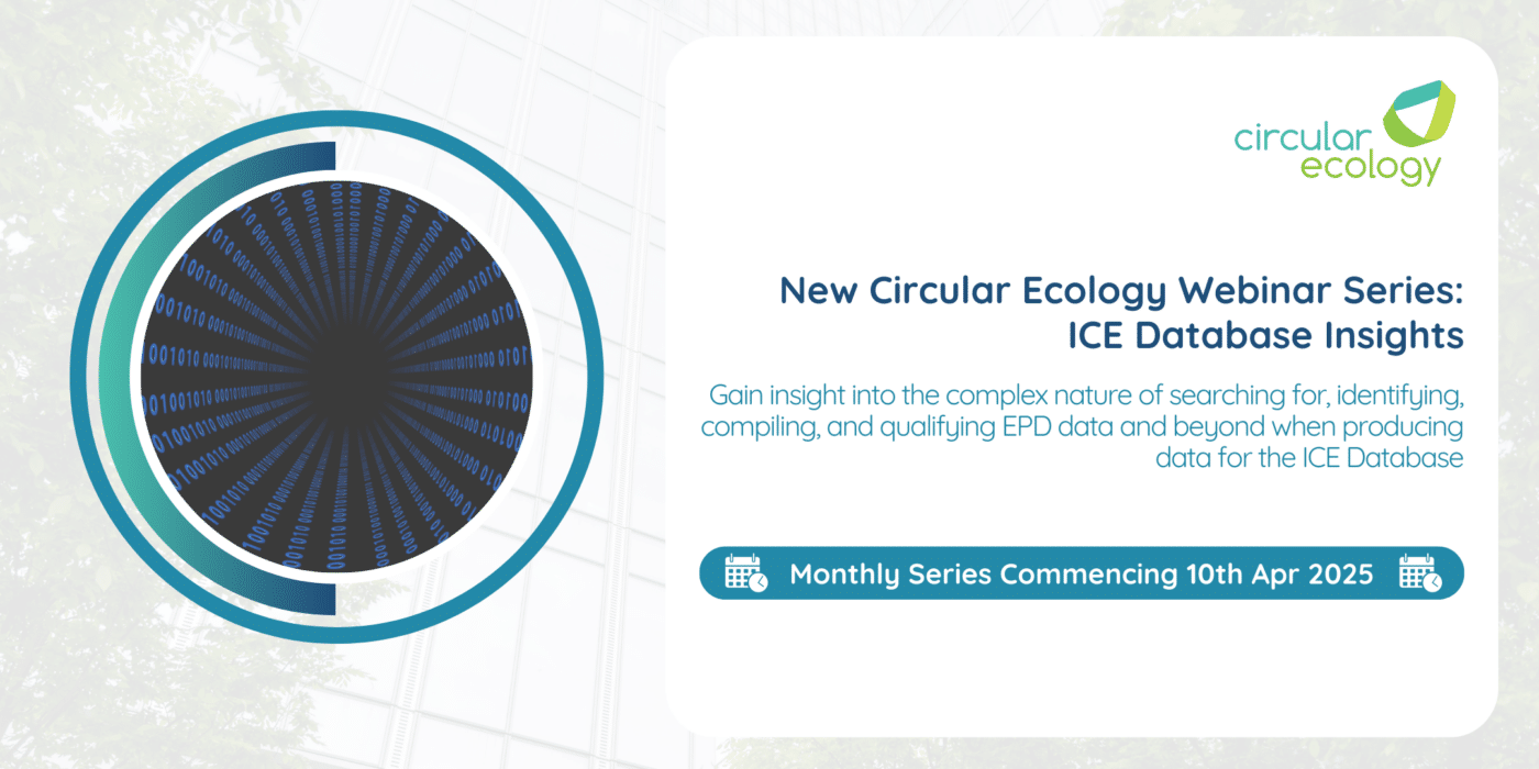 Circular Ecology successfully hosted a webinar on November the 28th, providing details on the launch of the Inventory of Carbon & Energy (ICE) Database v4.0. We received over 700 registrations and were joined live by over 400 people. The ICE Database has been downloaded by over 50,000 professionals globally. It is a free to use […]