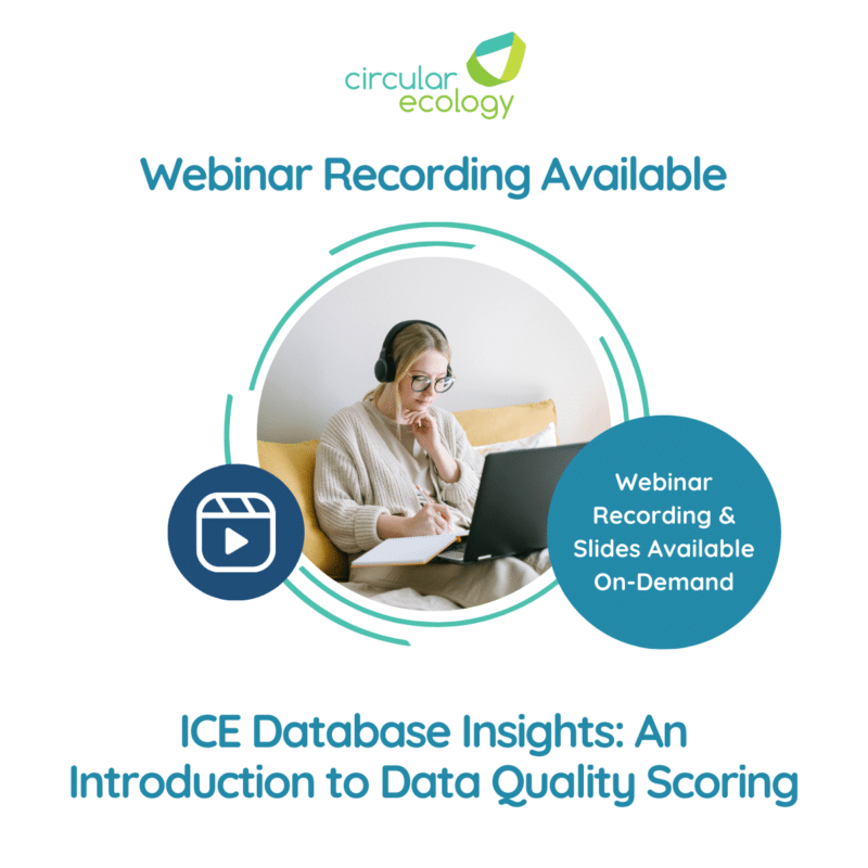 On Thursday, April 10th, Circular Ecology launched the first session of our ICE Database Insights webinar series with an introduction to data quality scoring. This webinar, hosted by Jon Burrow (Head of Carbon Accounting) and Charlie Zhu (Senior Sustainability Analyst), explored the growing importance of data quality in carbon footprinting and how it underpins the […]