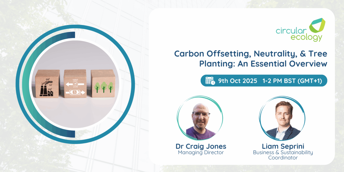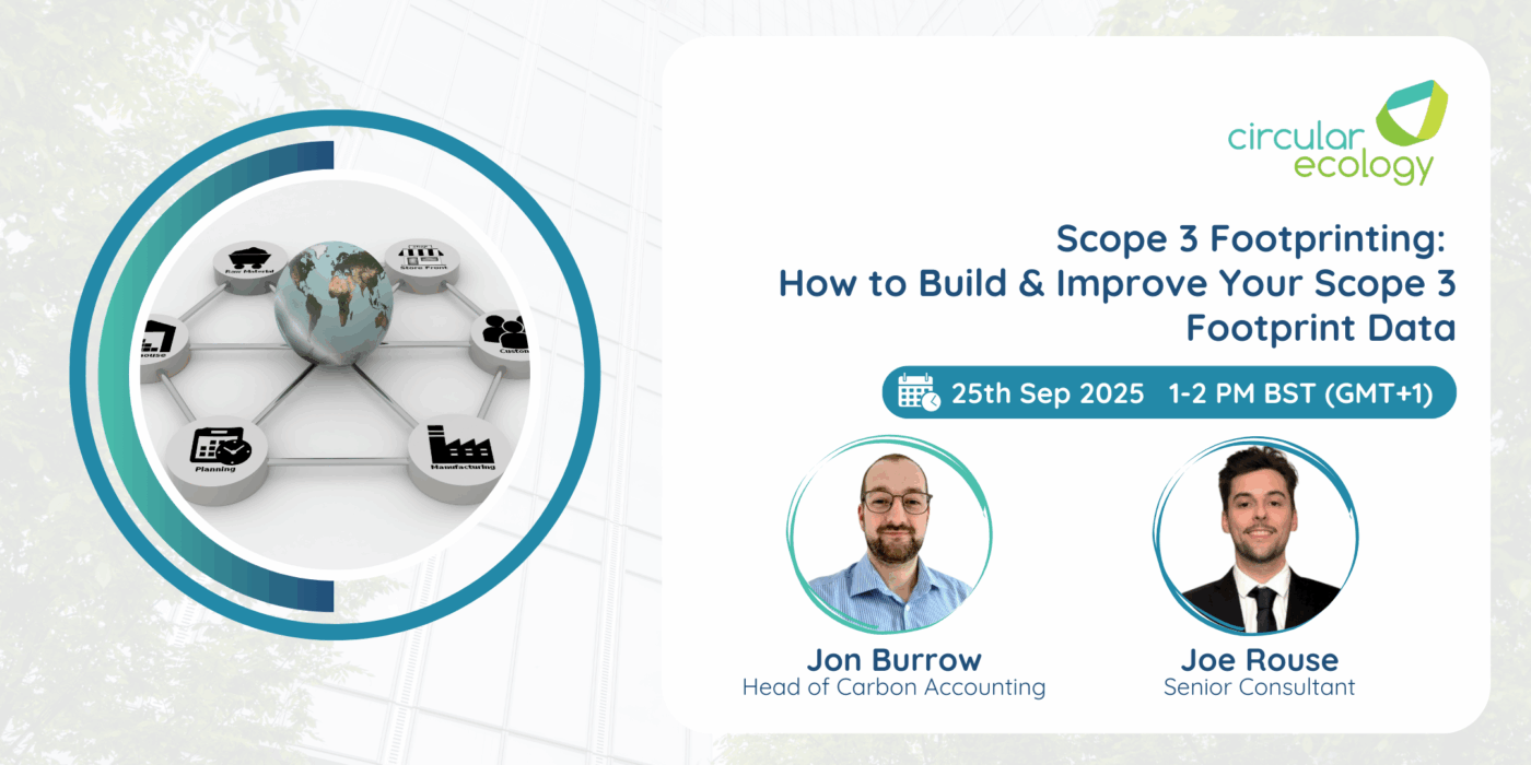 This autumn, Circular Ecology are delivering two free webinars focused on key areas of carbon reporting and mitigation strategy. Suitable for those new to carbon accounting and/or those looking to improve the robustness of their sustainability data, these sessions are designed to provide clear, evidence-based guidance.