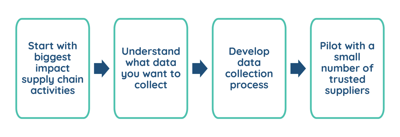 Ultimately, the highest quality Scope 3 data may need to come from the suppliers themselves, but any direct supplier engagement should be approached carefully and strategically. Organisations are rarely able to engage with their entire supply chain all at once, so any efforts should begin with suppliers linked to the largest and most strategically important emissions sources.